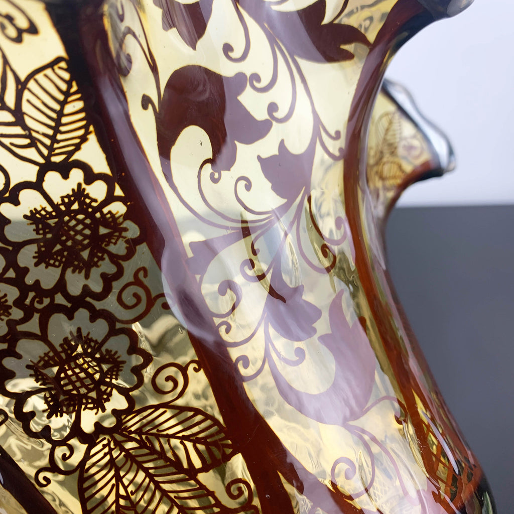 Amber Glass Ruffled Edge Centrepiece Bowl with Silver Overlay