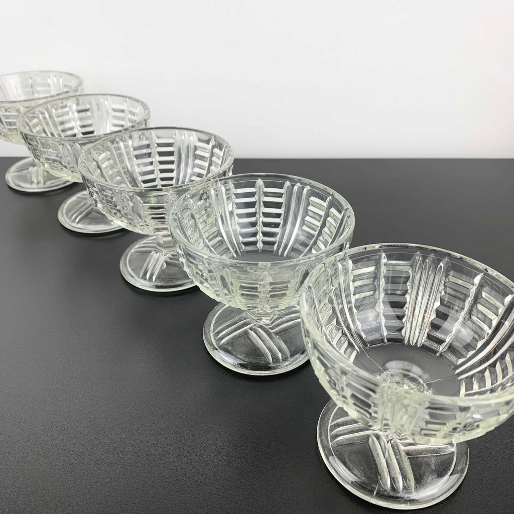 Vintage clear glass footed dessert and sherbet or ice cream bowls. Set of 5.