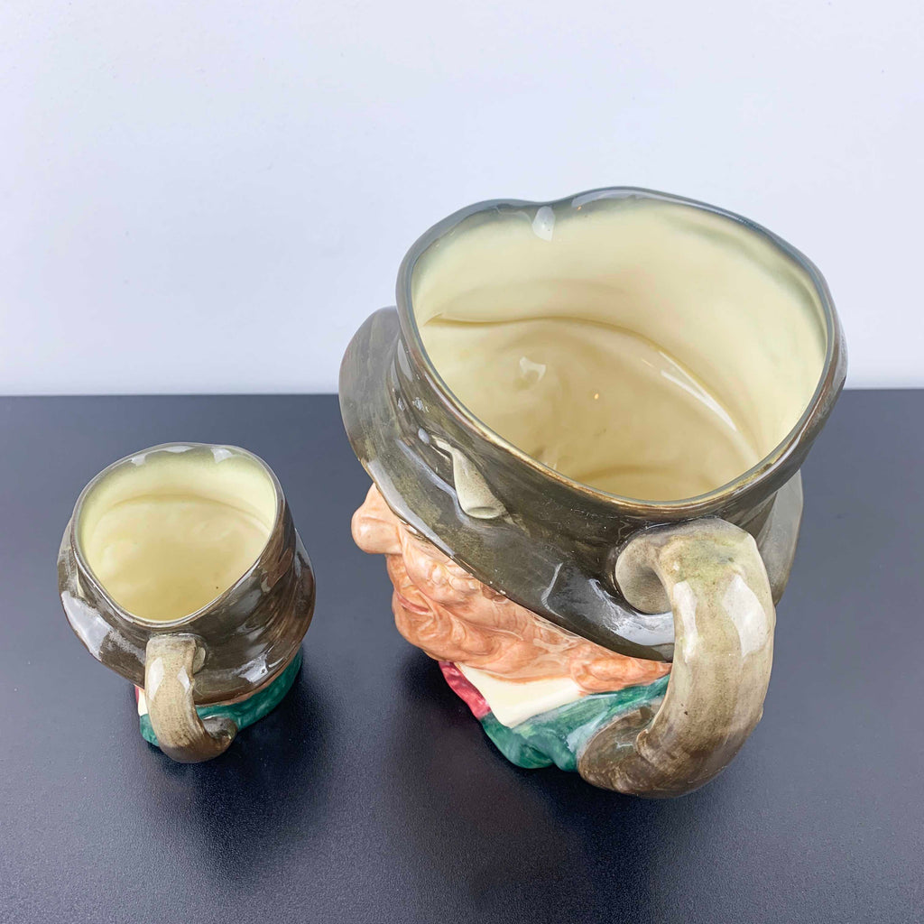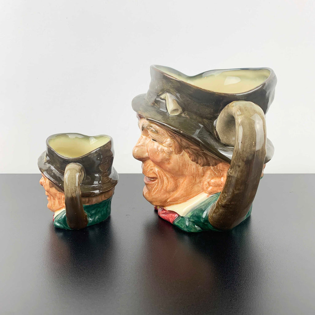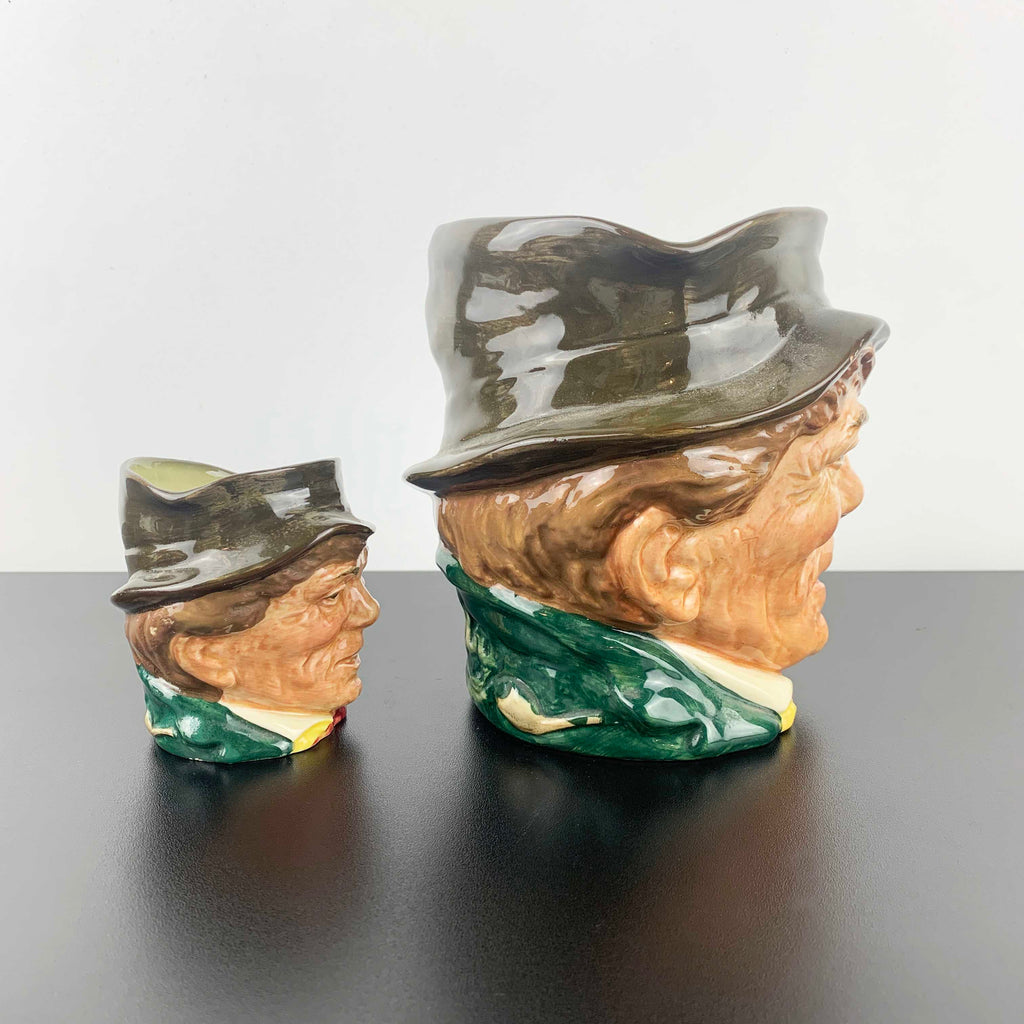 These jugs are the small size character jugs (head only as opposed to the full body toby jugs) produced by Royal Doulton for over 60 years and are very collectible.