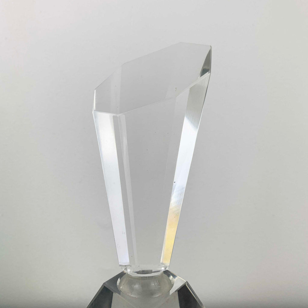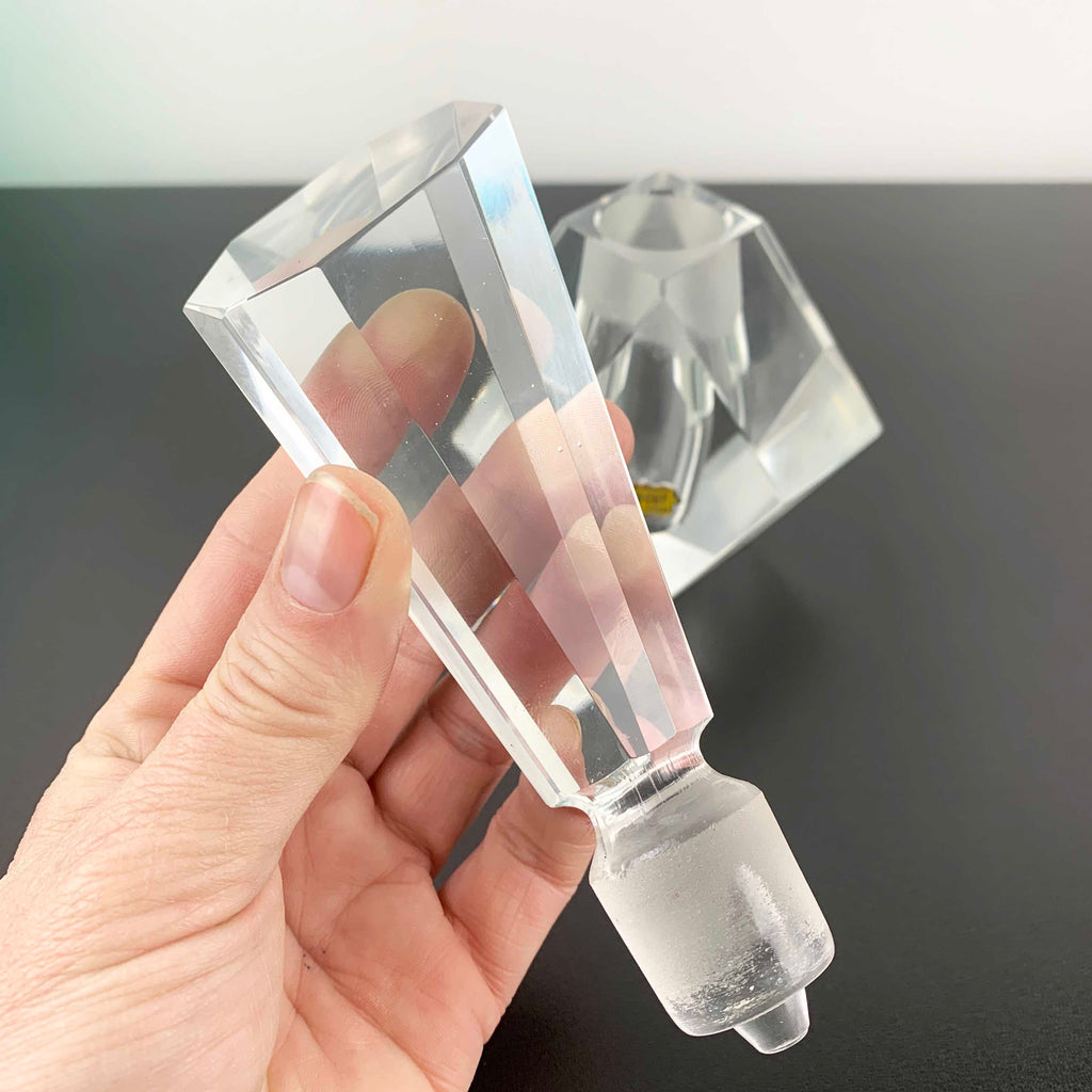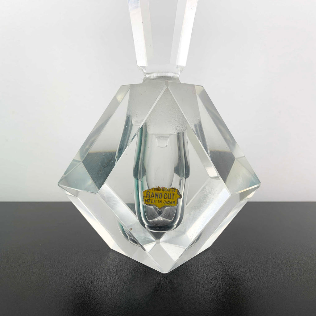 Large art deco style hand cut crystal perfume bottle, made in Japan.