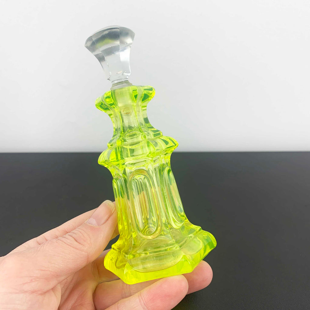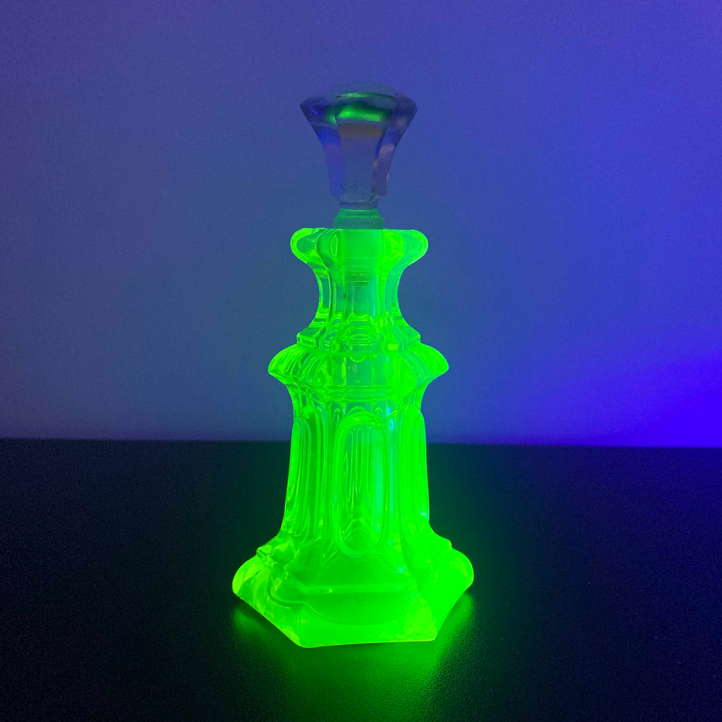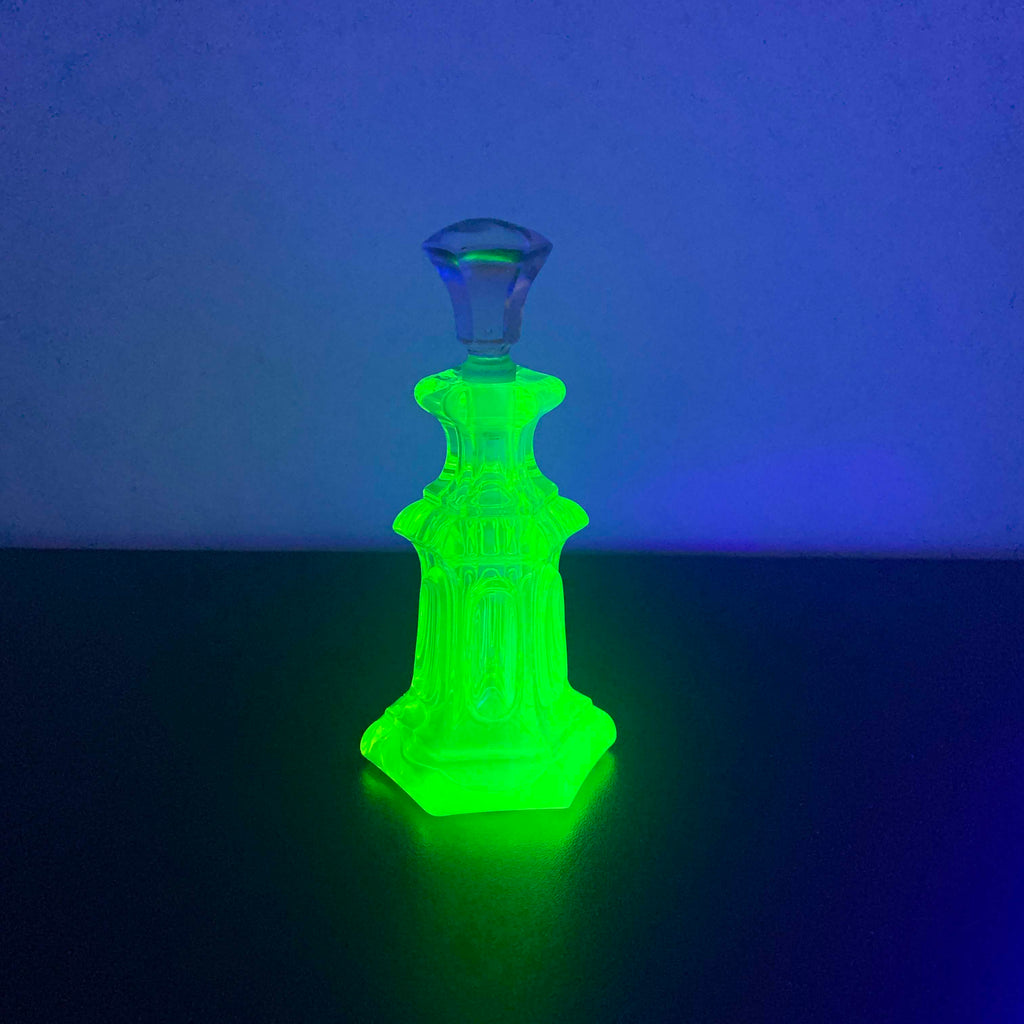Stunning art deco style uranium glass perfume bottle.