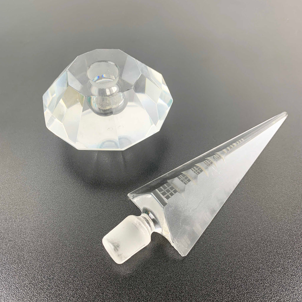 Mid century hand cut crystal perfume bottles, made in Japan.