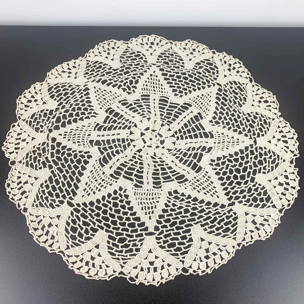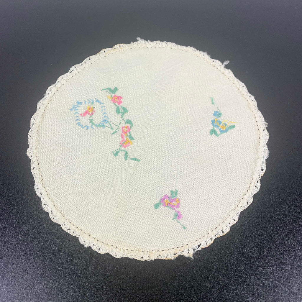One small round hand embroidered with floral work and lace edge - 190mm diameter