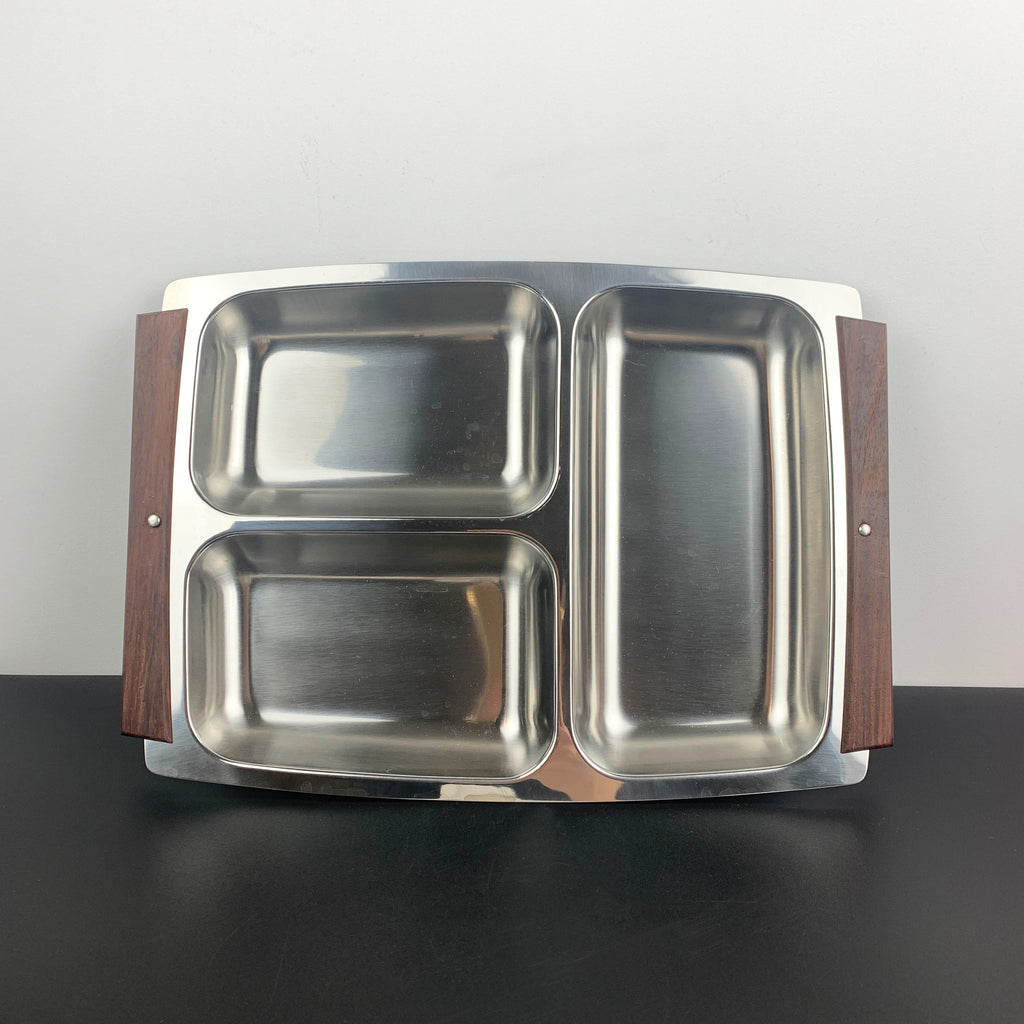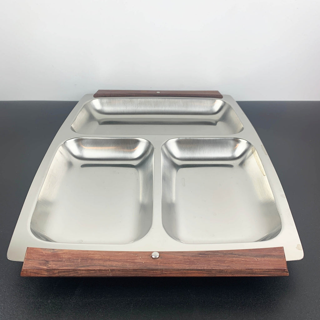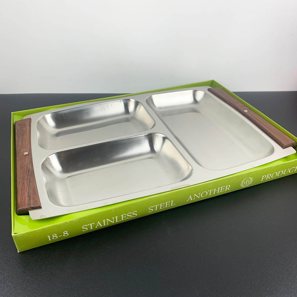 Retro 1970's stainless steel sectioned tray NOS