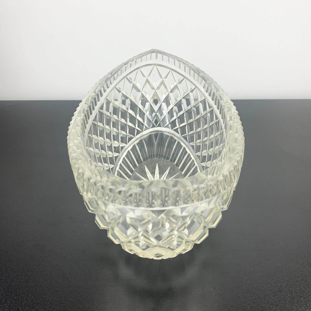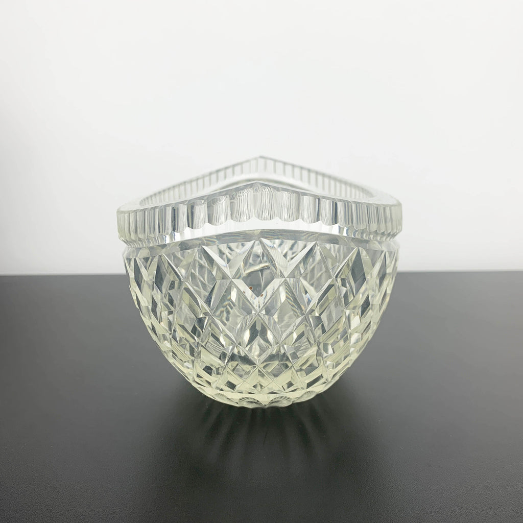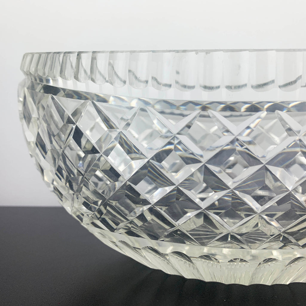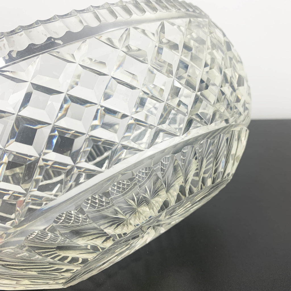 This heavy oval bowl features a traditional diamond cut design to the body, with a detailed thumbprint cut to the exterior top rim and base adding an extra layer of design detail which adds to the beauty of the piece.