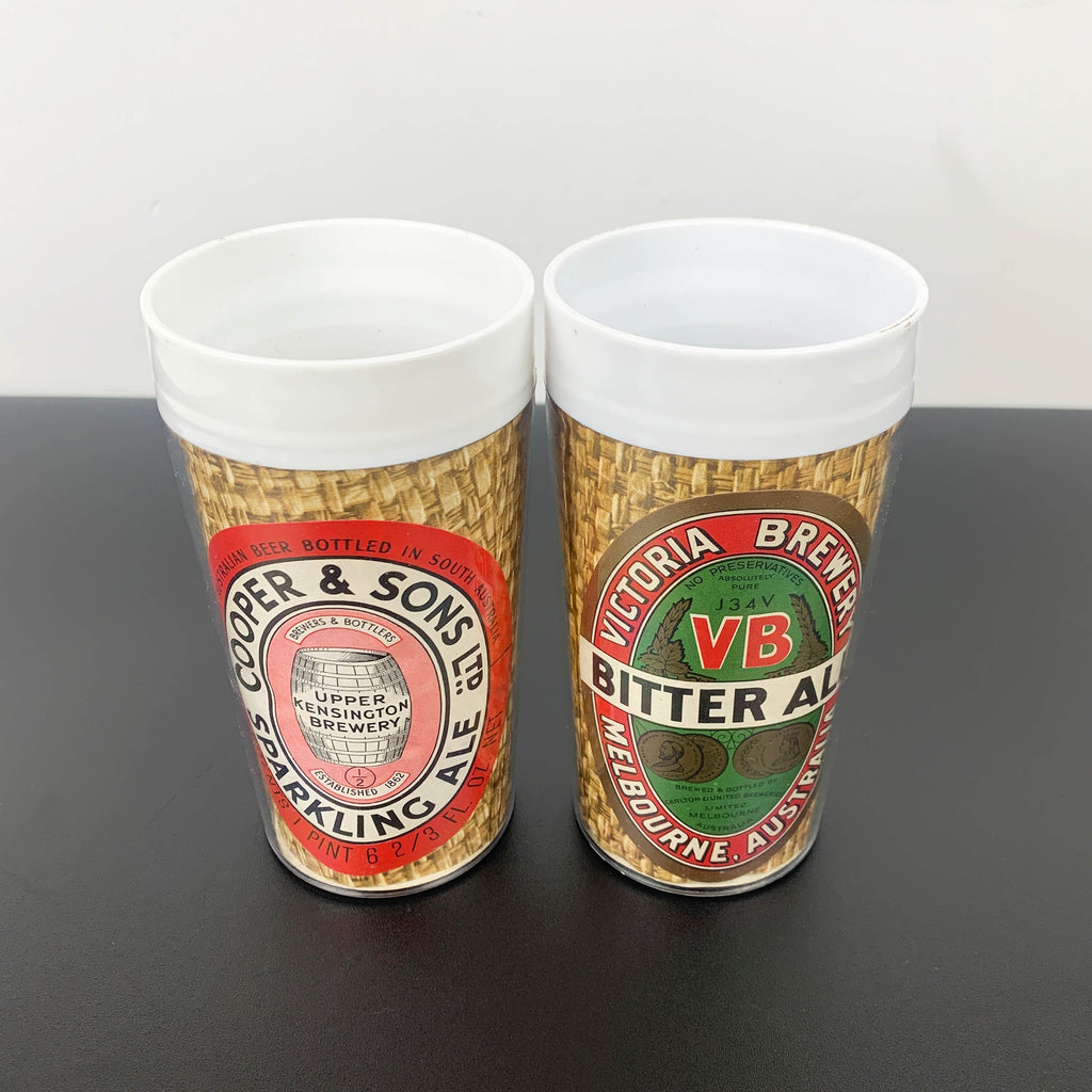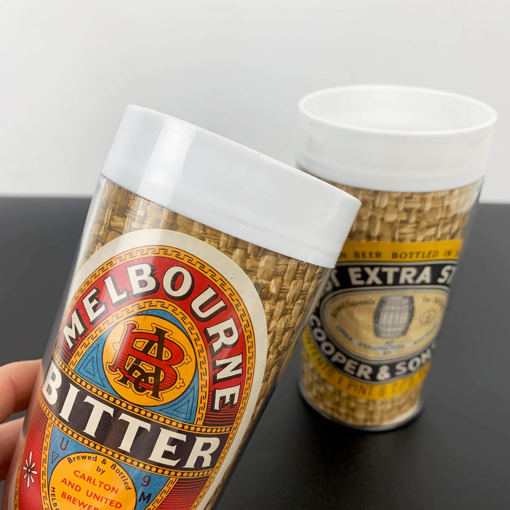 Vintage Australian beer advertising insulated tumblers, circa 1960's. Set of 2.