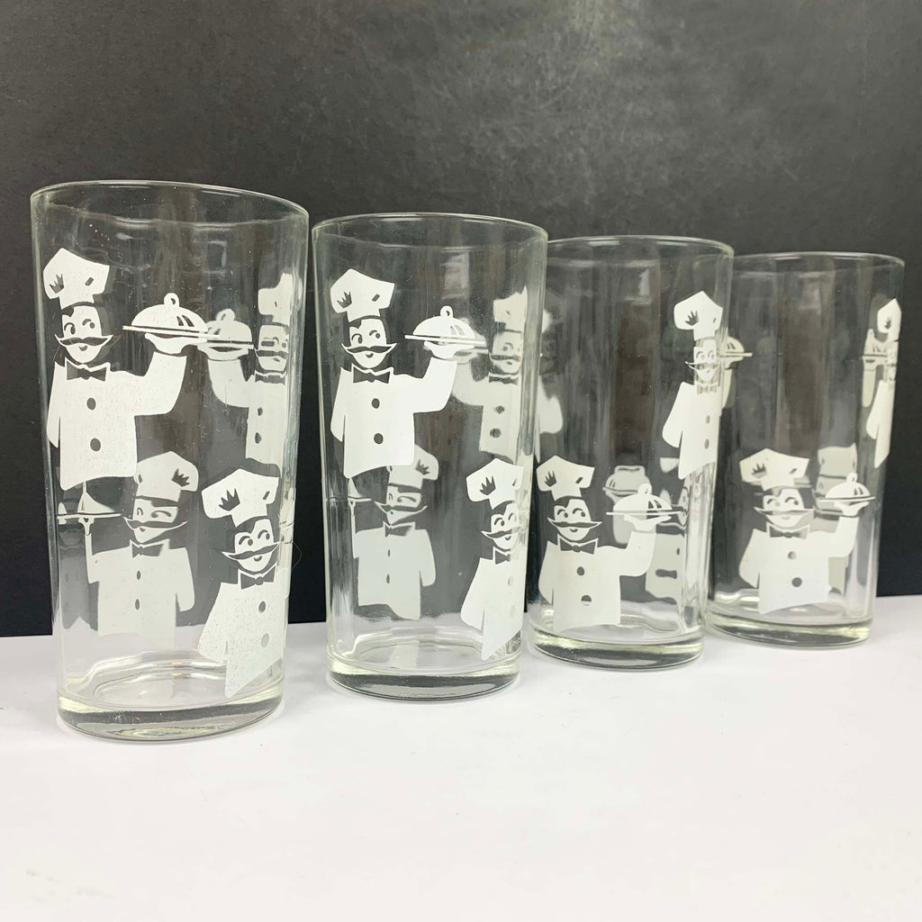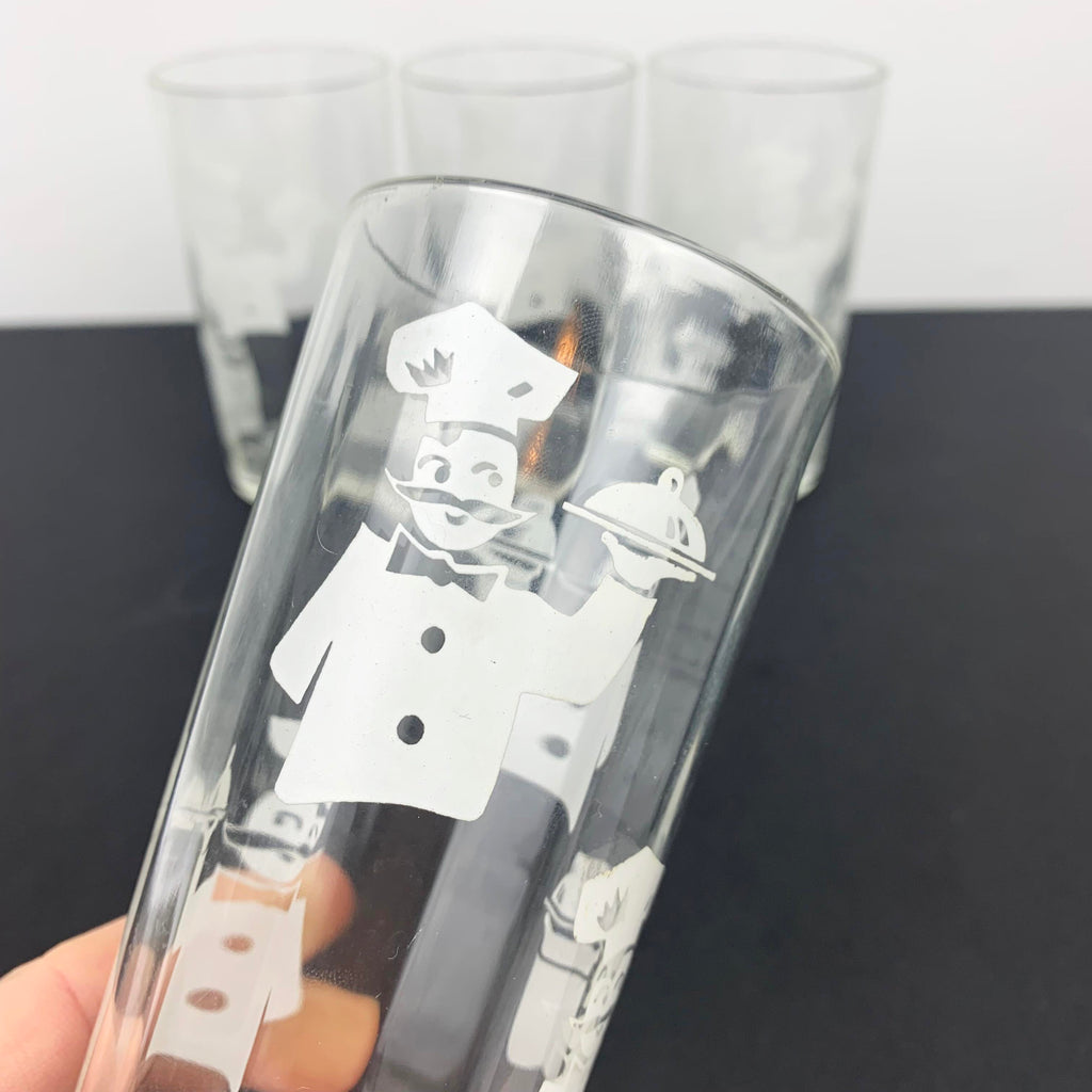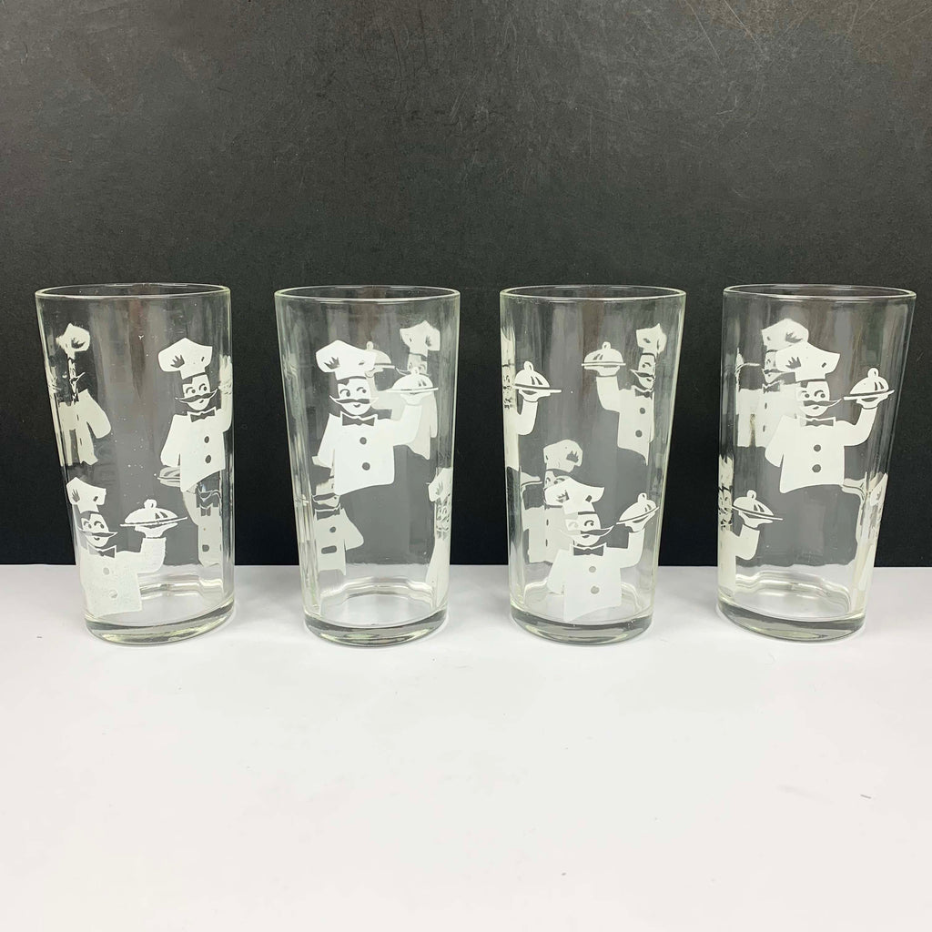Unique vintage set of tumblers with a whimsical chef print. Set of 4.