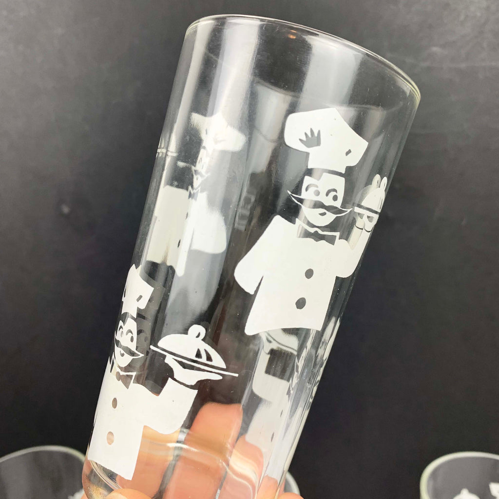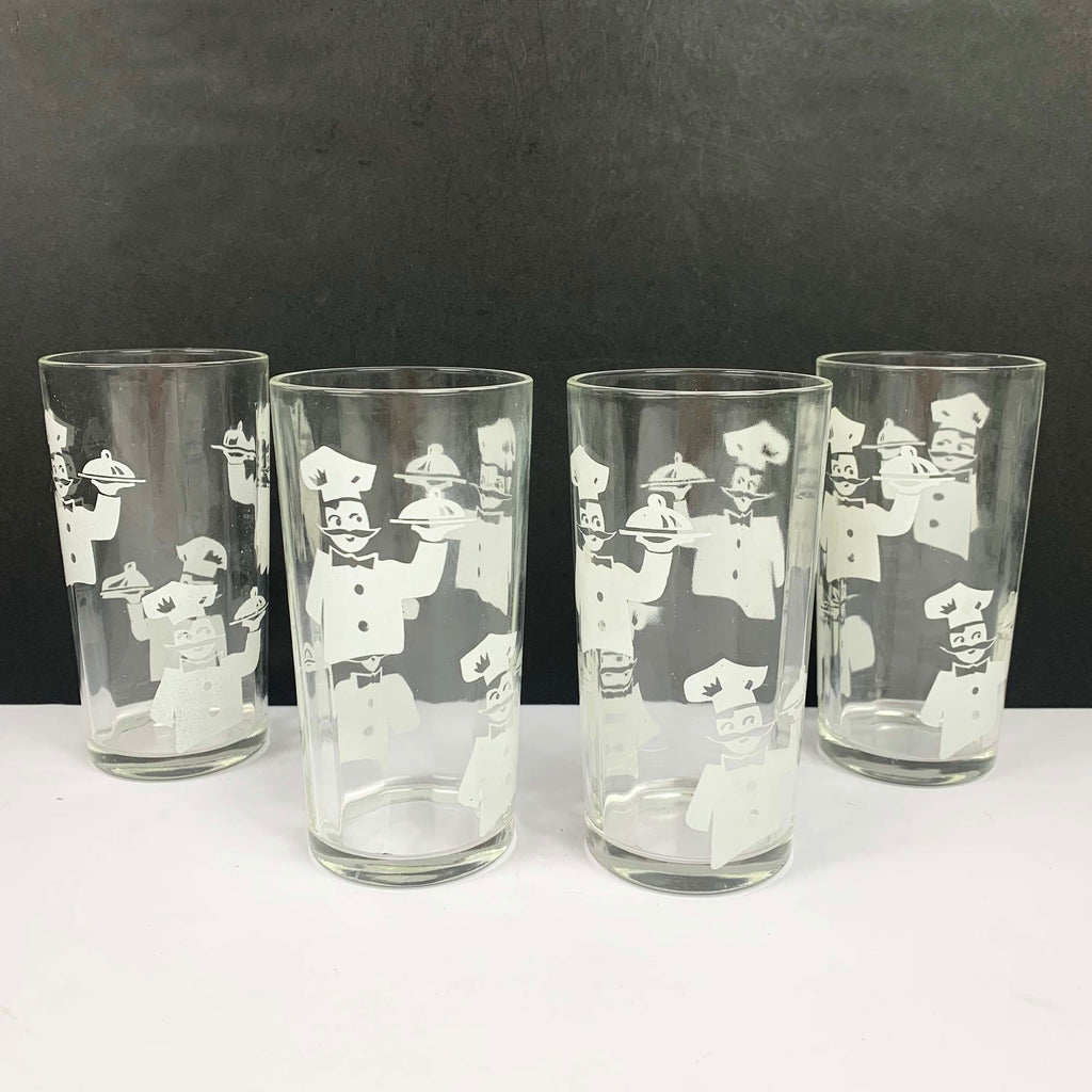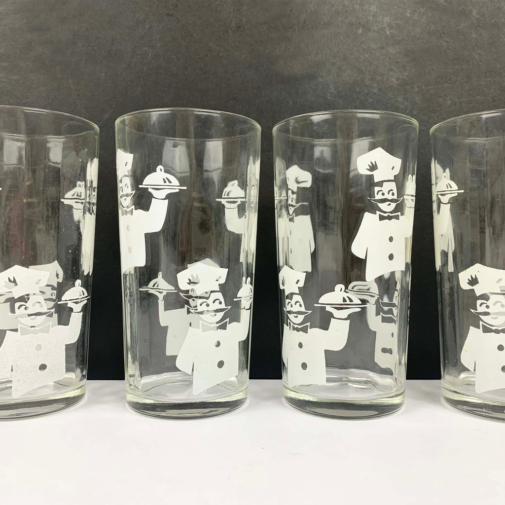 Unique vintage set of tumblers with a whimsical chef print. Set of 4.