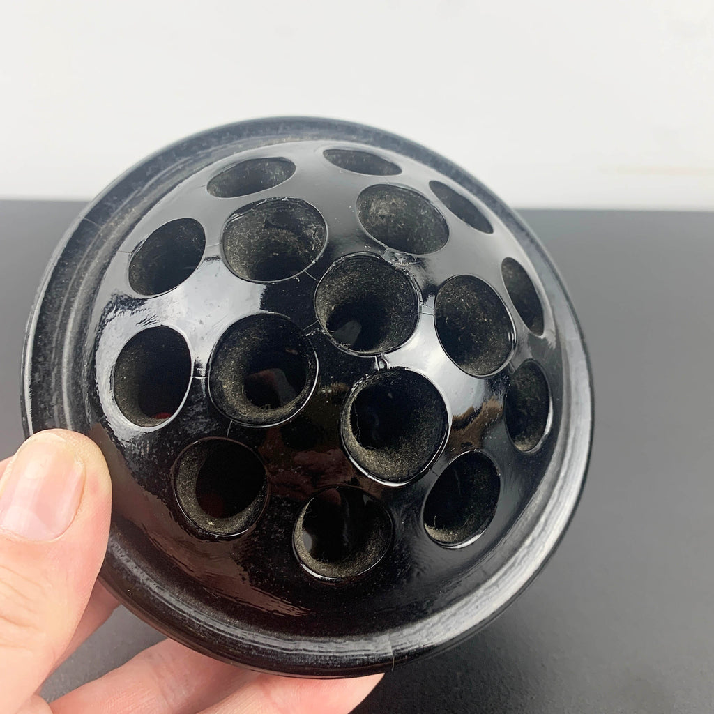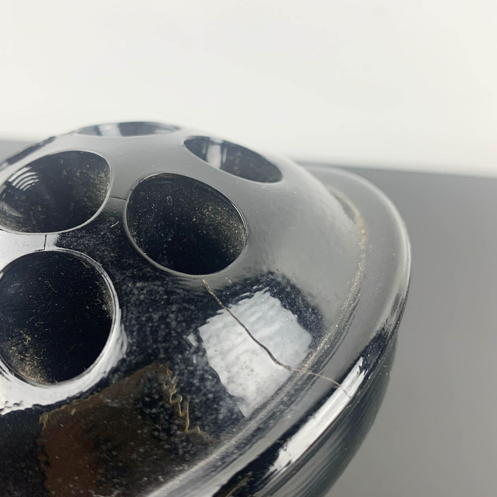 Antique black glass 16 hole flower frog c1916
