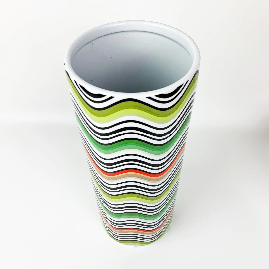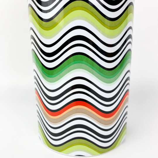 A large Missoni ceramic vase in the famous colourful wave pattern, an iconic Missoni designer piece for the home.