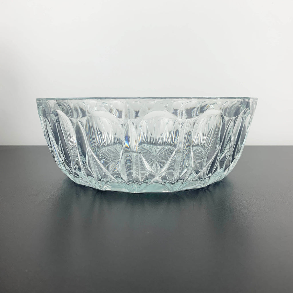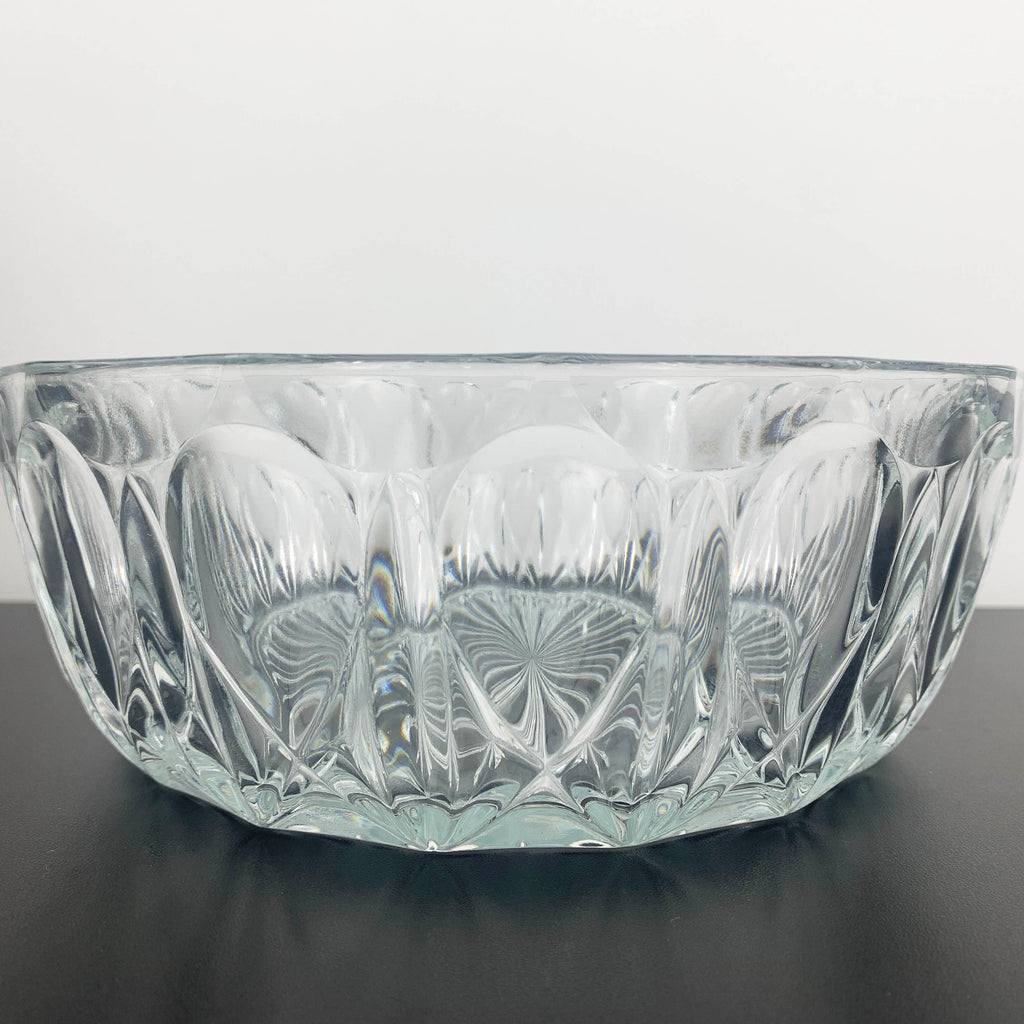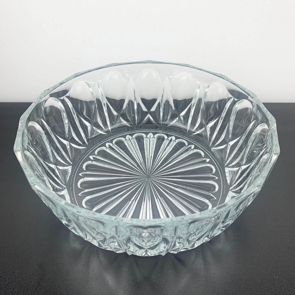 This bowl is suitable for salads, pastas and desserts. Can also be used as a stylish fruit bowl or floral bowl. It has an elongated thumbprint style pattern around the perimeter, and can also serve as the master bowl replacement for the small individual dessert bowl set in the same pattern.