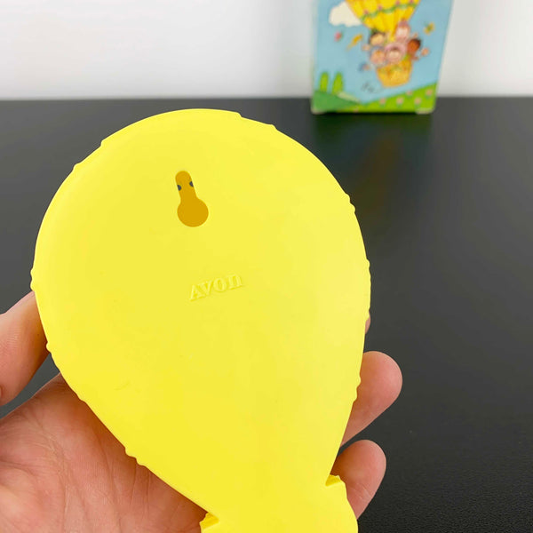 Avon collectible wall pomander, Hot Air Balloon in bright yellow. As new, in original box. Pomander does not contain the original wax chips but can be used with others. Hanging notch on rear.