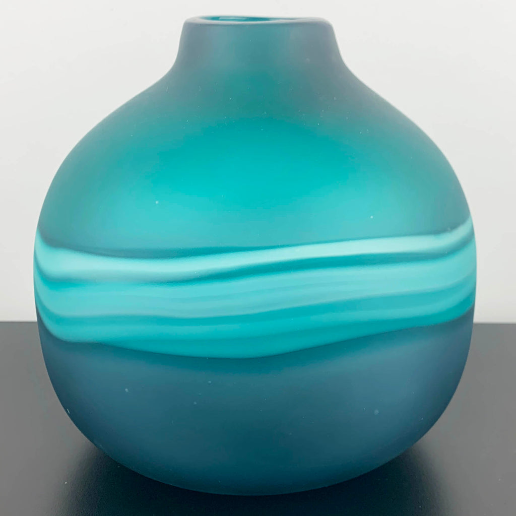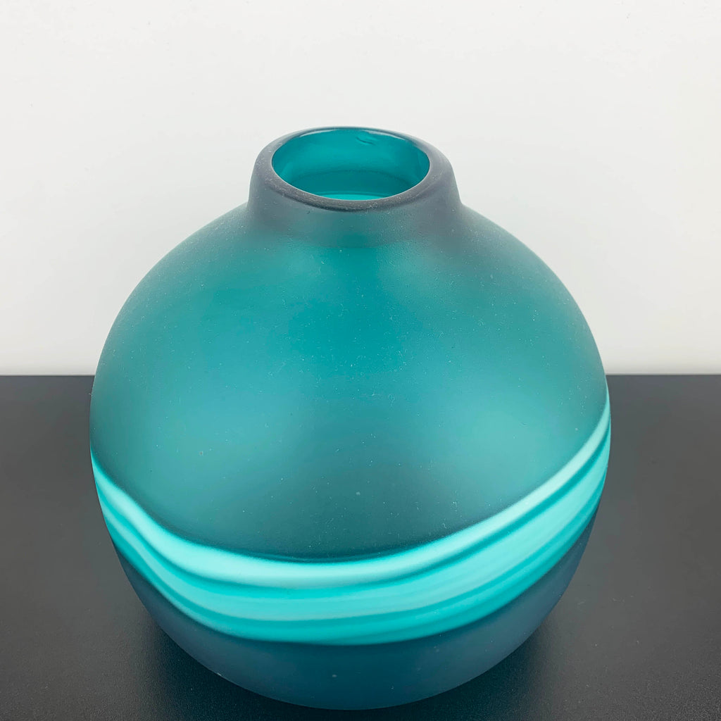 Large Art Glass Bulb Vase in Teal with Band Detail