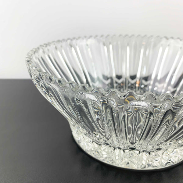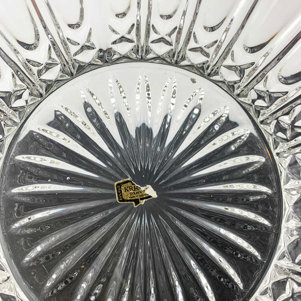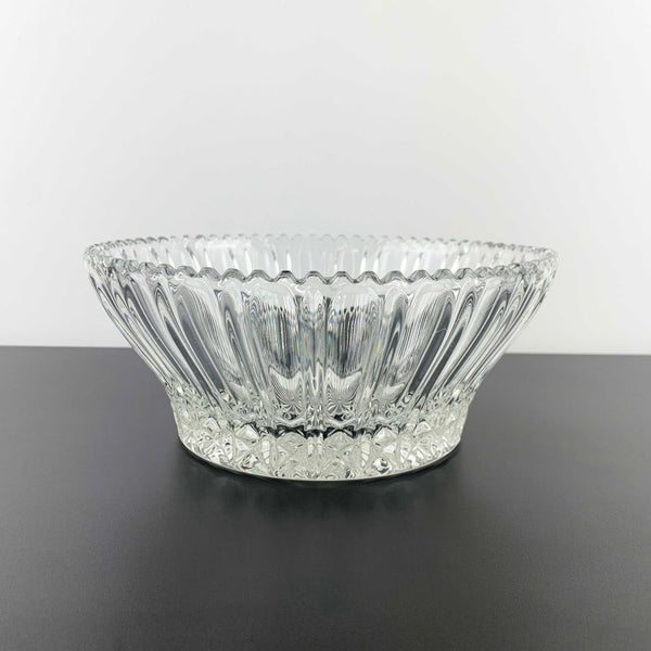 Stunning heavy, thick crystal bowl with beautiful fluted side design and pretty sawtooth rim by Zajecar Crystal, Yugoslavia.