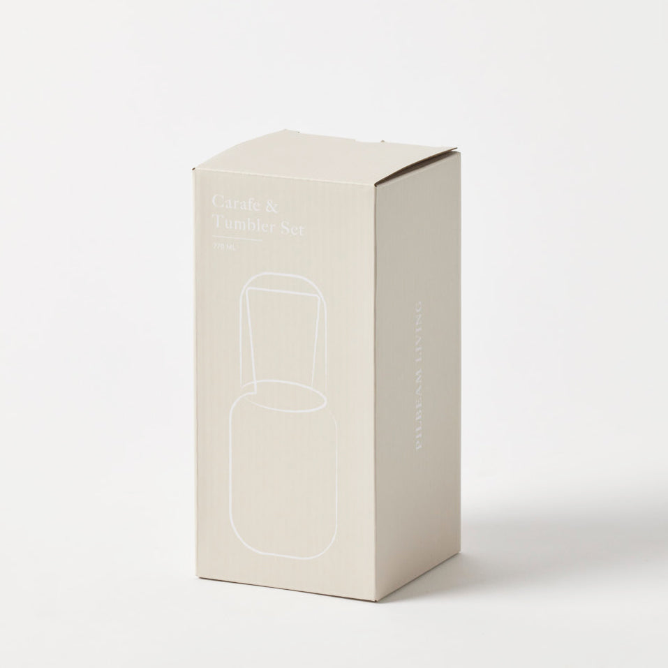 A timeless bedside essential designed for everyday ritual. This glass carafe is paired with a matching tumbler that rests neatly on top between use, keeping water fresh and dust-free overnight.