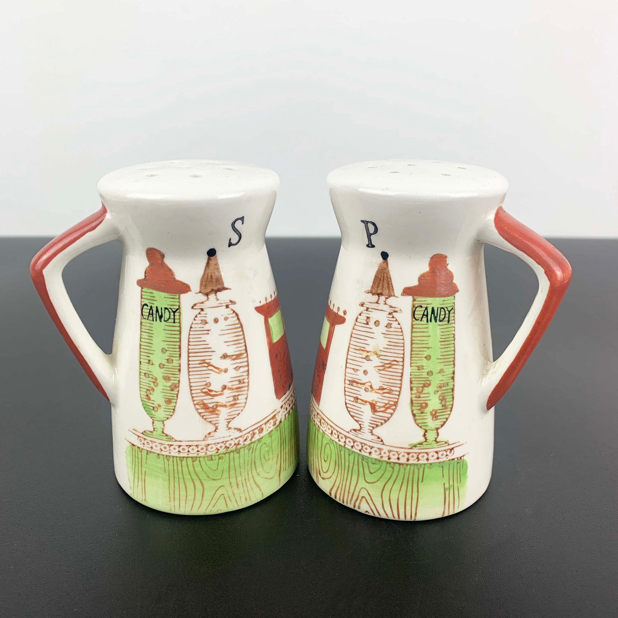 Cute set of ceramic salt and pepper shakers to add a vintage touch to your table by My Lady, handmade in Japan, circa 1970's.