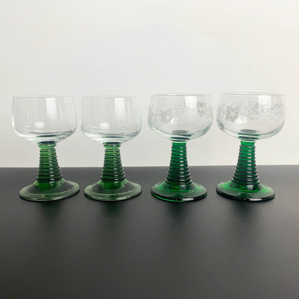 Green Roemer style wine glass - Mixed set of 4
