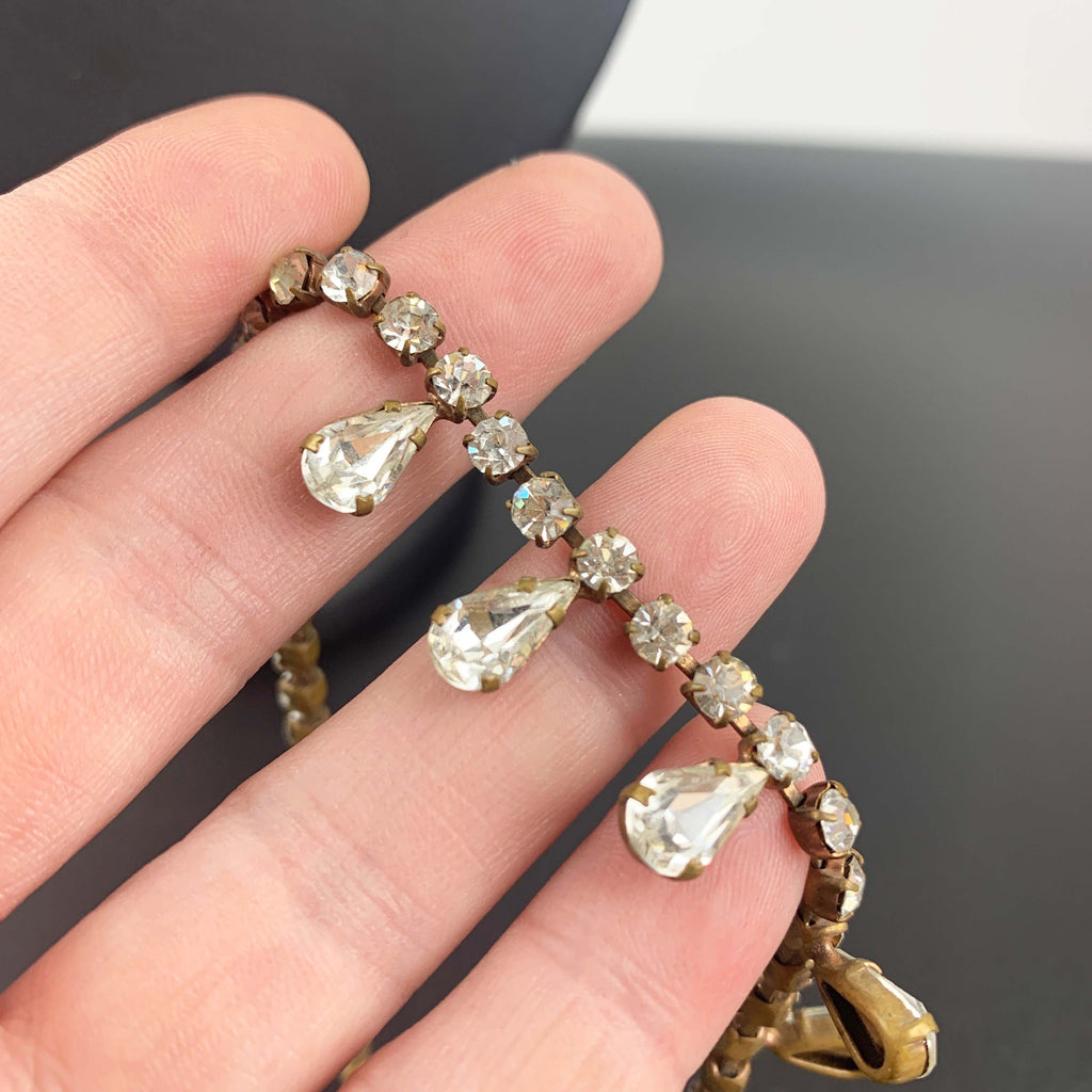 Beautifully made with each stone prong set. Measures approx. 35cm total length. Teardrop rhinestones are approx. 10mm long.